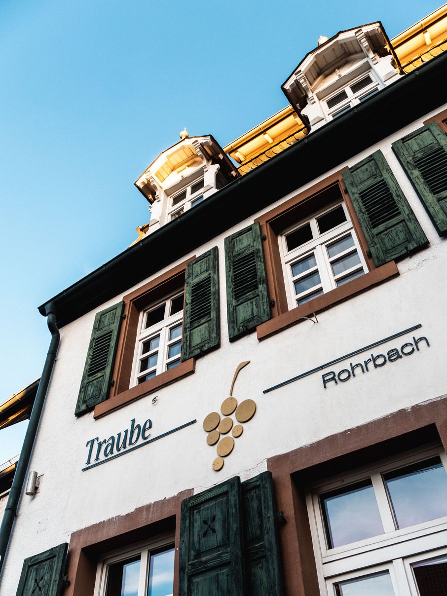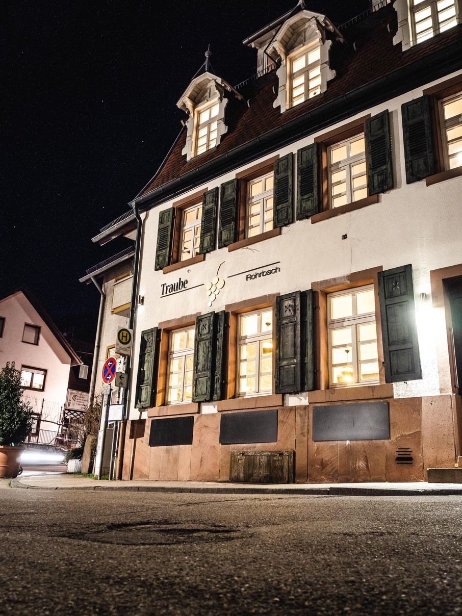 La Traube se caractérise par une histoire longue et diversifiée. De nombreux invités nous racontent leurs propres histoires sur la Traube. Nous entendons parler de bons souvenirs d'enfance liés à l'achat de petits pains à la boulangerie qui se trouvait autrefois ici. À propos des moments choquants où le restaurant a brûlé en 1983. À propos de « la » Maria, qui a fait du restaurant « sa » Traube. De camarades étudiants qui se sont dispersés dans le monde entier après leurs études et qui se sont retrouvés après 30 ans à la Traube. Le restaurant abrite la plus ancienne concession de l'ancienne ville de Rohrbach. Les murs abritaient autrefois une gare de diligence, une boucherie et une boulangerie. Et dans les années 1950, le cinéma Rohrbach, le « Luxor Lichtspiele », a été installé ici pendant sept ans. Il comptait 244 places et proposait 7 à 10 représentations sur 5 à 7 jours. En 1981, la famille Clauer de la cave à Rohrbache du même nom a donné la Traube sa destination actuelle. Au fil des années, le restaurant est devenu une institution nationale et est connu bien au-delà d'Heidelberg. Face à l'intérêt croissant pour ses propres vins et à l'agrandissement de la cave, la famille Clauer a souhaité se consacrer à nouveau davantage à la viticulture et a donc loué le restaurant à partir de 2007. En 2015, ils se sont séparés du locataire et ont cherché un successeur, qui a été trouvé en Ole Hake et sa compagne Lisa Ziegler. Le bâtiment a été confié à la famille Hake et soigneusement rénové. En tant que jeune entreprise familiale, nous avons initialement développé un concept global de rénovation afin d'améliorer les processus de travail dans l'exploitation quotidienne du restaurant et l'atmosphère de bien-être des clients. L'idée principale était d'apporter plus de luminosité et de légèreté dans les pièces très rustiques et sombres, très lugubres à cause du plâtre brut des murs noirci par la fumée de cigarette et des poutres du plafond d'un brun foncé. Des éléments particuliers de la « vieille » Traube ont été mis en valeur en réduisant les environs, comme le mur en grès, les poutres en chêne sculptées à la main et la porte sculptée à la main du vestibule. Depuis lors, le nouveau point de mire du restaurant est l'escalier central en acier avec des marches en chêne, qui relie désormais les deux chambres et crée une toute nouvelle atmosphère conviviale et ouverte dans les deux pièces. De nombreux changements sont évidents au premier coup d'œil, mais des travaux plus approfondis ont également été réalisés - en grande partie à la main - et surtout des rénovations ont été réalisées « en coulisses ». Les locaux de refroidissement et de stockage ainsi que l'ensemble de la cuisine et de l'évier ont été agrandis, modernisés et carrelés à nouveau. Tout « constructeur de maisons » connaît les défis de la rénovation. Avec la Traube, le charme singulier du bâtiment ancien et ses caractéristiques particulières ont été ajoutés. De nombreuses heures de nervosité, de saleté, de sueur, de motivation, de bonne humeur, de frustration, d'amour, d'idées et de projets abandonnés se trouvent dans les « quatre » murs individuels qui abritent notre restaurant. Et à chaque coin de rue, il y a des histoires que nous, notre famille et nos amis avons écrites pour remplir la maison de notre vie et de celle de nos invités. Au début de l'automne 2016, le moment était venu : la « nouvelle » Traube a ouvert ses portes juste à temps pour le week-end de Kerwe. Avec de nombreux anciens mais aussi de nouveaux visages. Depuis, beaucoup de choses se sont passées. Après plus de six ans de travail dans des conditions de pandémie, nous savons avant tout une chose : tout change, rester immobile est dangereux. Nous avons beaucoup appris, nous nous sommes constamment développés et attendons avec impatience chaque nouvelle expérience.